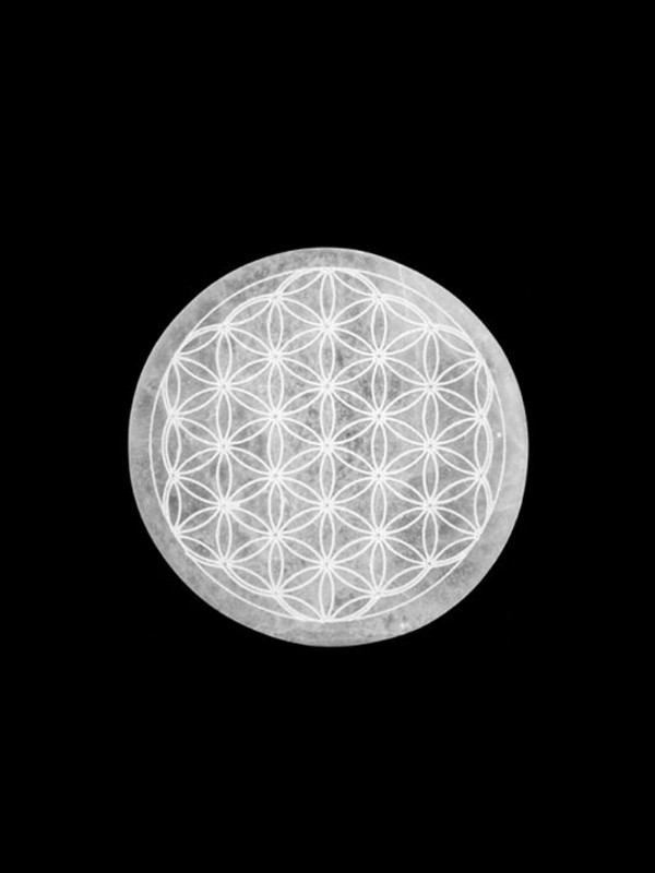 La selenita toma su nombre de Selene, la diosa griega de la luna, y se encuentra en varias partes del mundo, especialmente en regiones con depósitos evaporíticos. Las piezas utilizadas en el Plato de Selenita Flor de la Vida son seleccionadas cuidadosamente de minas donde la extracción se realiza con métodos respetuosos con el medio ambiente. La inspiración detrás del diseño del plato es la Flor de la Vida, un símbolo sagrado que representa la conexión entre toda la vida en el universo. Este patrón geométrico antiguo ha sido utilizado en diversas culturas a lo largo de la historia para simbolizar la creación, la fertilidad y la armonía universal.